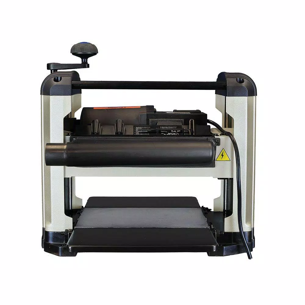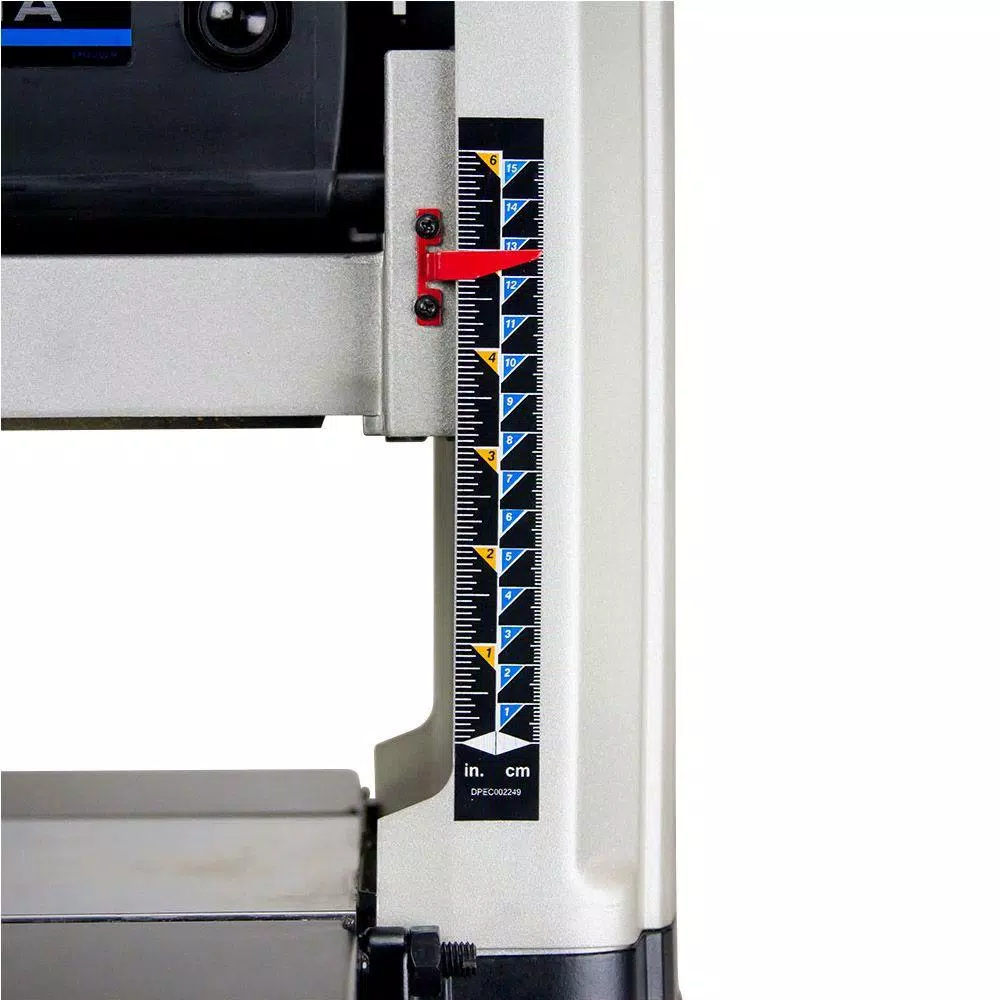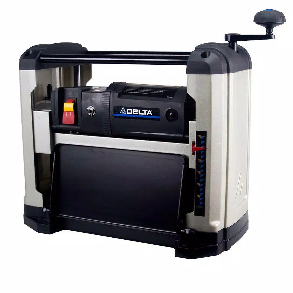 The Delta 22-555 Portable Thickness Planer is great for professional results in the woodworker’s shop. It features two polyurethane feed rollers for a no-slip grip on the work piece; positioned close to the cutter head to improve work piece finish. The machine also has precision machined steel cutter head for endurance and accuracy with a stainless steel bed that reduces friction and improves motor efficiency.