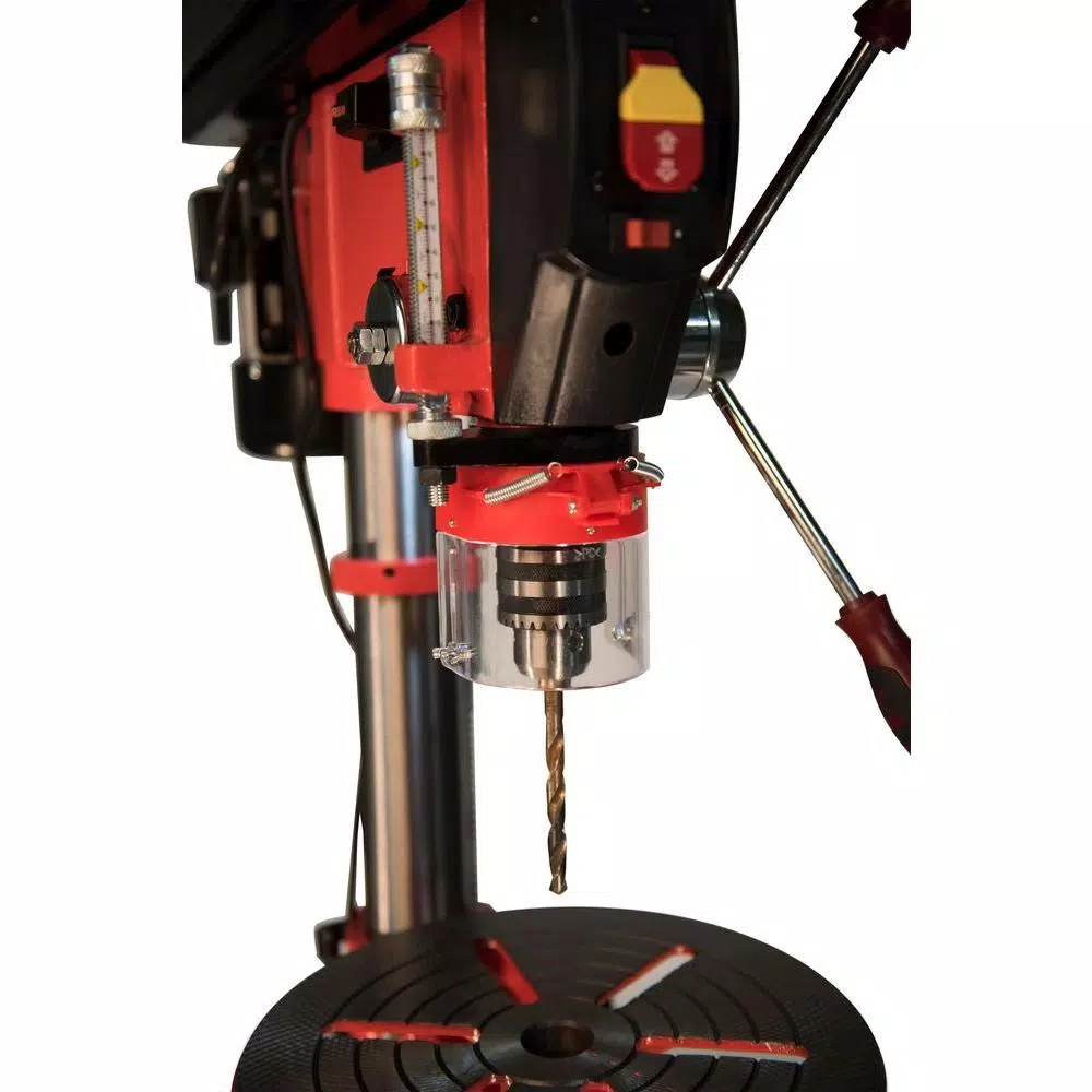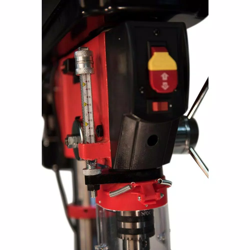 General International’s 13 in. 16 Speed Drill Press delivers the power you need for even the most demanding workloads. Loaded with features you would expect in a more industrial type drill presses including a bright LED work light. Choose from 16 speeds to match the ideal cutting conditions you need for your material. Featuring our global patented cross-pattern precision laser guide system; this drill press is perfect for the home, garage or worksite. The General DP2003 16 Speed Drill Press, allows you to drill true and exact holes more conveniently than with a handheld drill. This floor-standing, cast iron Drill Press has the power to drill through metal, wood and other materials. The stationary bit with a 5/8 in. chuck capacity, provides accuracy and control. The 13 in. rack and pinion worktable raises and lowers easily and rotates 45° to the right or left, allowing you to drill perfect right angles and consistent repetitive holes. This 16 Speed Drill Press is ideal for use in the home or professional shop on woodworking, metalworking or do-it-yourself projects. The DP2003 Drill Press has belt drive speed adjustment with a minimum speed of 260 RPM and a maximum speed of 4,220 RPM. The worktable can adjust up to 26 in. to accommodate large pieces. The large, front mounted power button is easy to manipulate, even when wearing gloves. For additional safety and stability the drill press can be bolted to the floor. Includes a 2 year limited warranty.