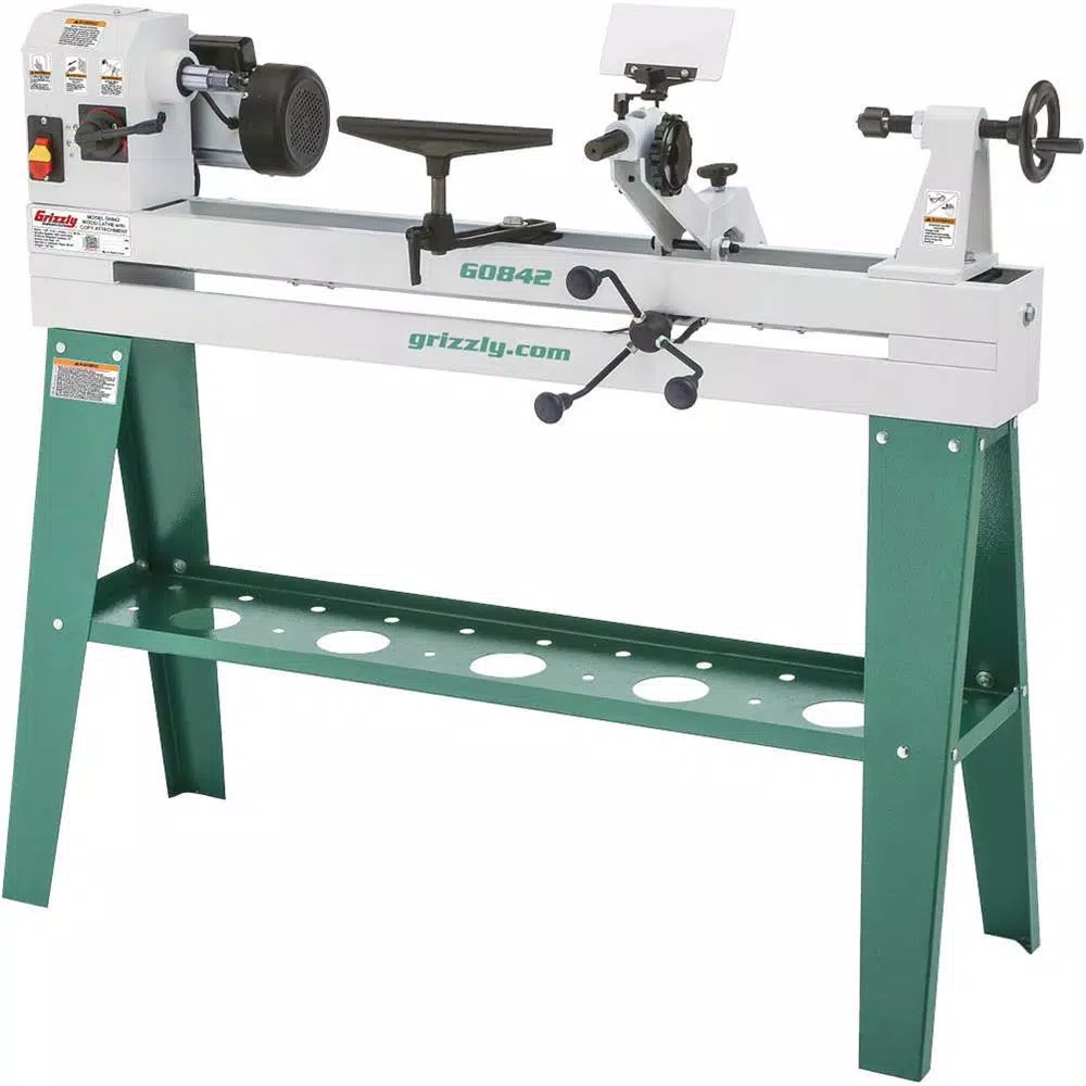 The G0842 Wood Lathe with Copy Attachment is ideal for the hobby furniture maker. With a 110-Volt, 3/4 HP motor and variable-speed spindle, this machine will allow you to easily reproduce stair spindles or chair and table legs up to 32 in. L using a template or master workpiece. The copy attachment also drops out of the way for turning new spindles.