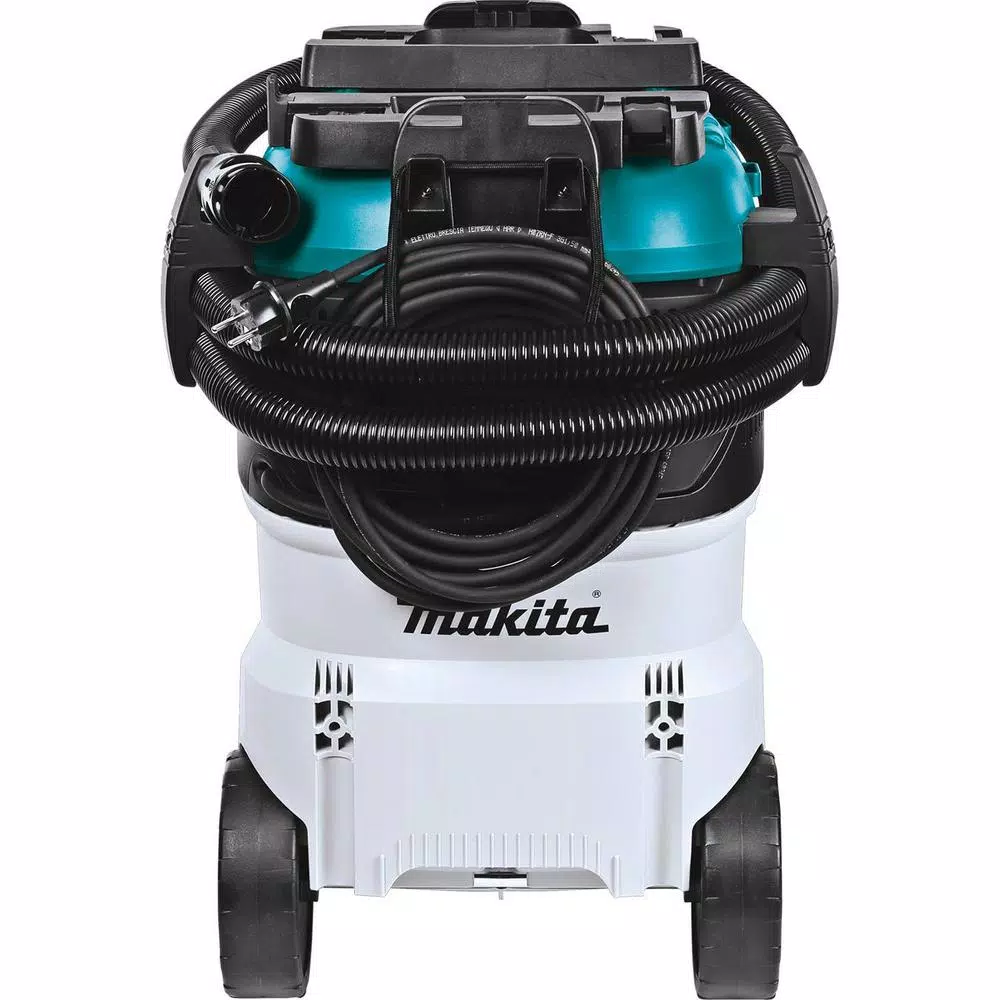 The 11 Gal. Wet/Dry HEPA Filter Dust Extractor/Vacuum (VC4210L) is a best-in-class solution for dust extraction in concrete and woodworking applications. The VC4210L is powered by a 12 AMP motor that generates 148 CFM of suction power and 92 In. of water lift to take on the most challenging applications. Designed with contractors in mind, the VC4210L combines power with less noise and less weight in a smaller footprint and is ideal for indoor and room-to-room applications. The motor chamber is constructed of quality sound-absorbing materials, delivering an operating sound level of only 60 dB(A). In addition, precision lightweight motor components and more efficient air ducting allowed Makita engineers to reduce the weight to only 35 lbs. For increased stability and easier maneuverability, the VC4210L has wide-set rear wheels and enlarged steel caster front wheels, which creates a lower center of gravity. The VC4210L features innovative Automatic Filter-Cleaning System and an efficient 2-stage filtration system with main Nano filters engineered to maximize the container volume and improve efficiency, while capturing 99.95% of particles size 2 microns and larger. The Certified-HEPA main filter captures 99.97% of particles size 0.3 microns and larger, which meets or exceeds the Department of Energyโs standard for HEPA filters.