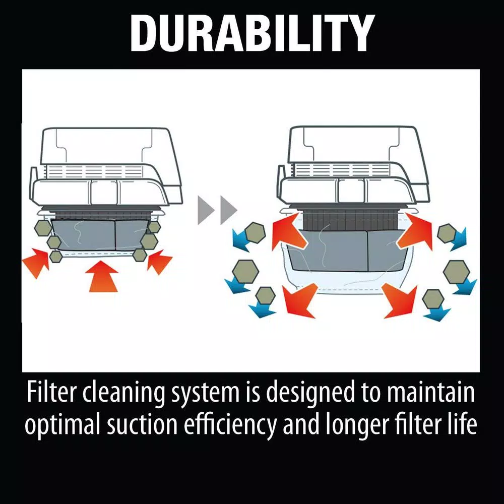 - Filter cleaning system is designed to maintain optimum suction efficiency and longer filter life