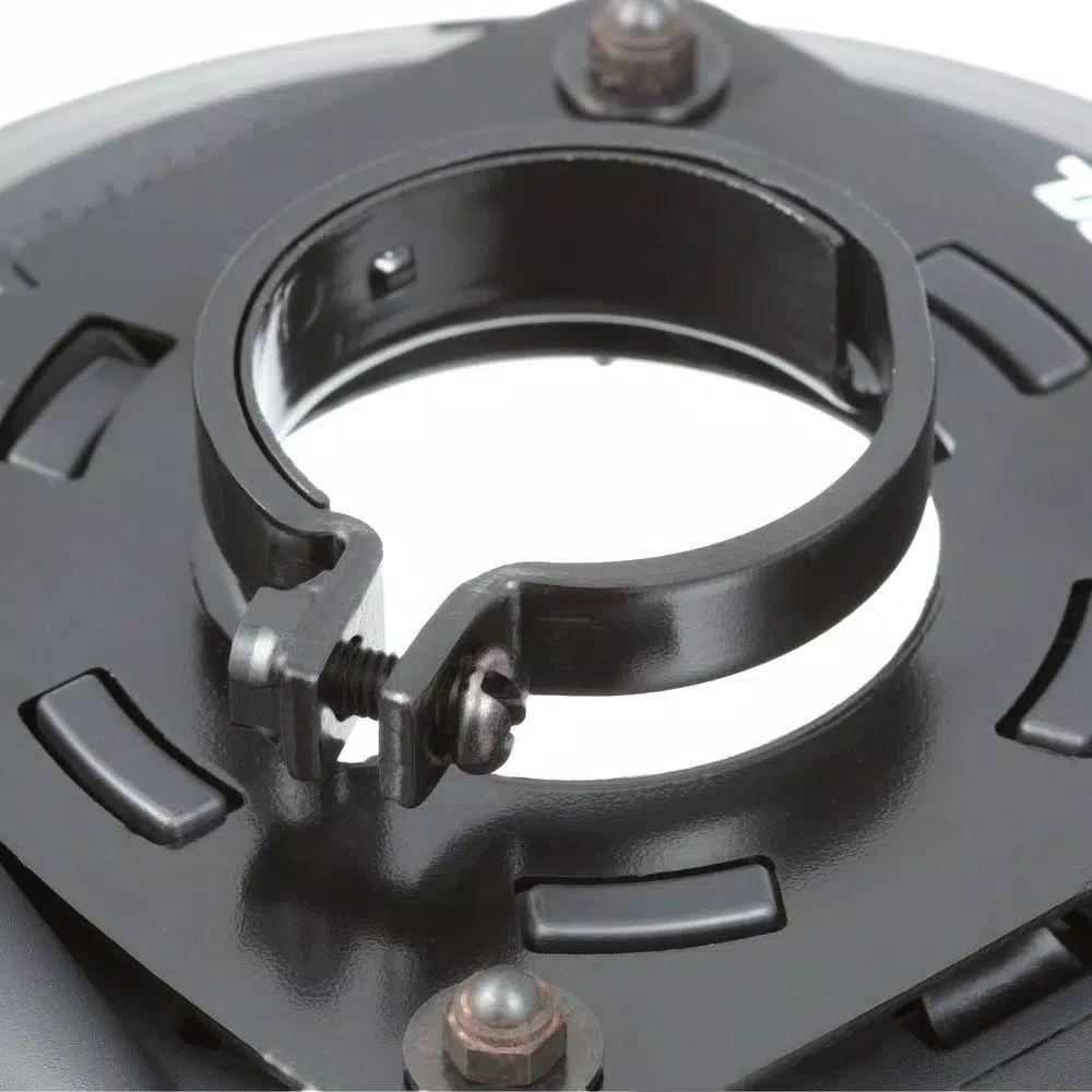 Makitaβs new grinder dust shroud is designed to fit Makita 4-1/2 in. β 5 in. grinders. It features a spring-loaded suspension system that keeps the shroud flush to the surface during movement and compensates for blade wear. The shroud has a removable edge piece for surface work flush to edges or other objects. It also has soft brushes that help contain the dust and allow for smooth movement over the work surface. The outside diameter of the extraction port will work with most standard vacuum hose systems. The new dust shroud is ideal for concrete finishing, concrete material removal and paint or surface coating removal.