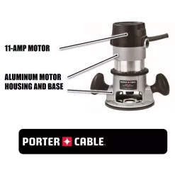 The Porter-Cable 1.75 HP Fixed Base Router Kit is a reliable and versatile router system that was designed to match your woodworking needs. With its 11 Amp motor that delivers 27,500 RPM, you have the power to tackle tough materials. The router features precision-machined, aluminum motor housing, a base and a micrometer depth-of-cut adjustment that is accurate to 0.0078 in.