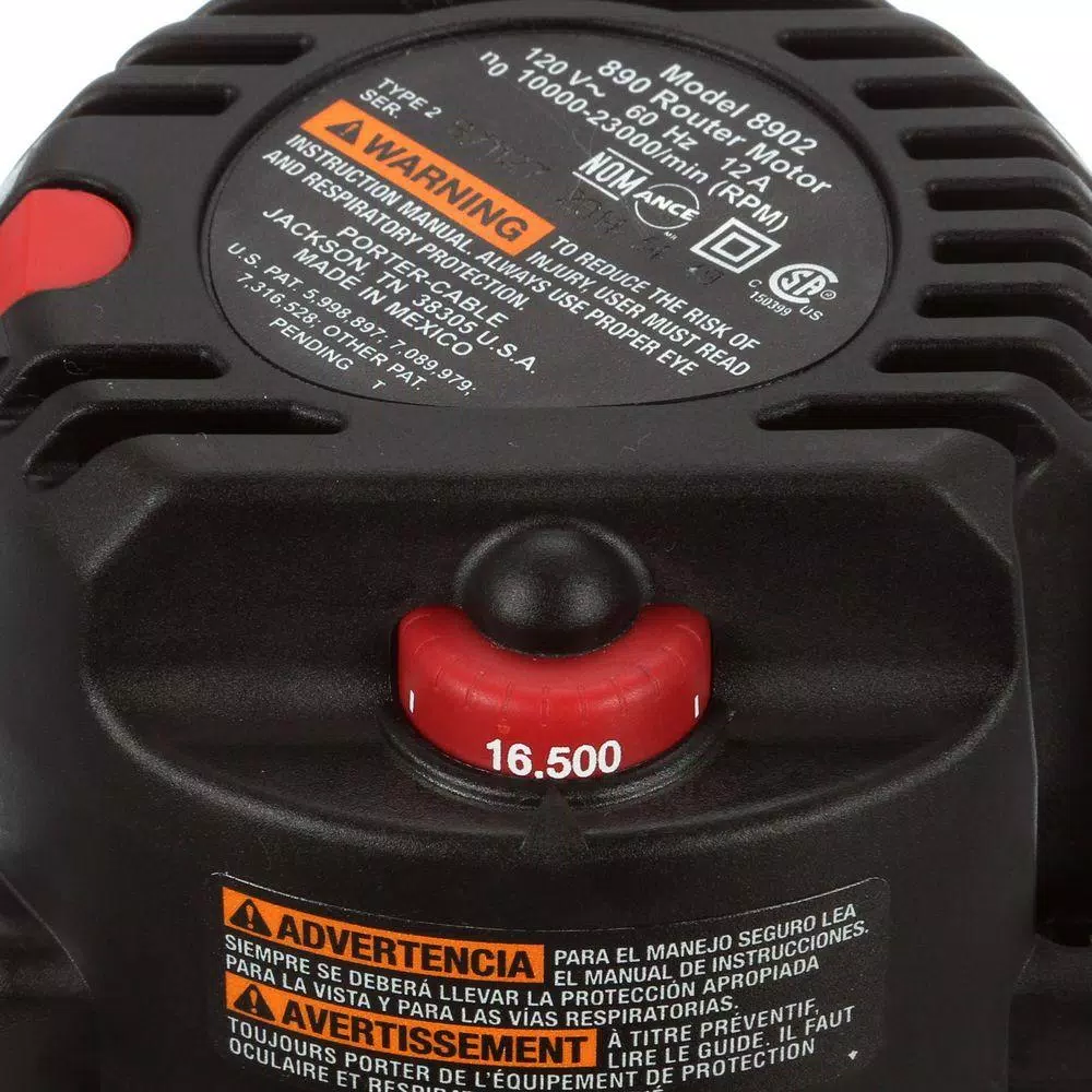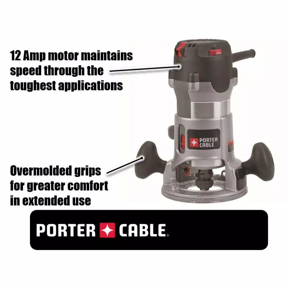 The PORTER-CABLE 2.25 hp Fixed Base Router Kit features full-time electronic feedback to maintain motor speed throughout the toughest applications. With its variable-speed control (from 10,000 to 23,000 RPM), you get optimal bit speed for all of your many jobs. With the dual-position switch, you can cut the power while maintaining control of the router.