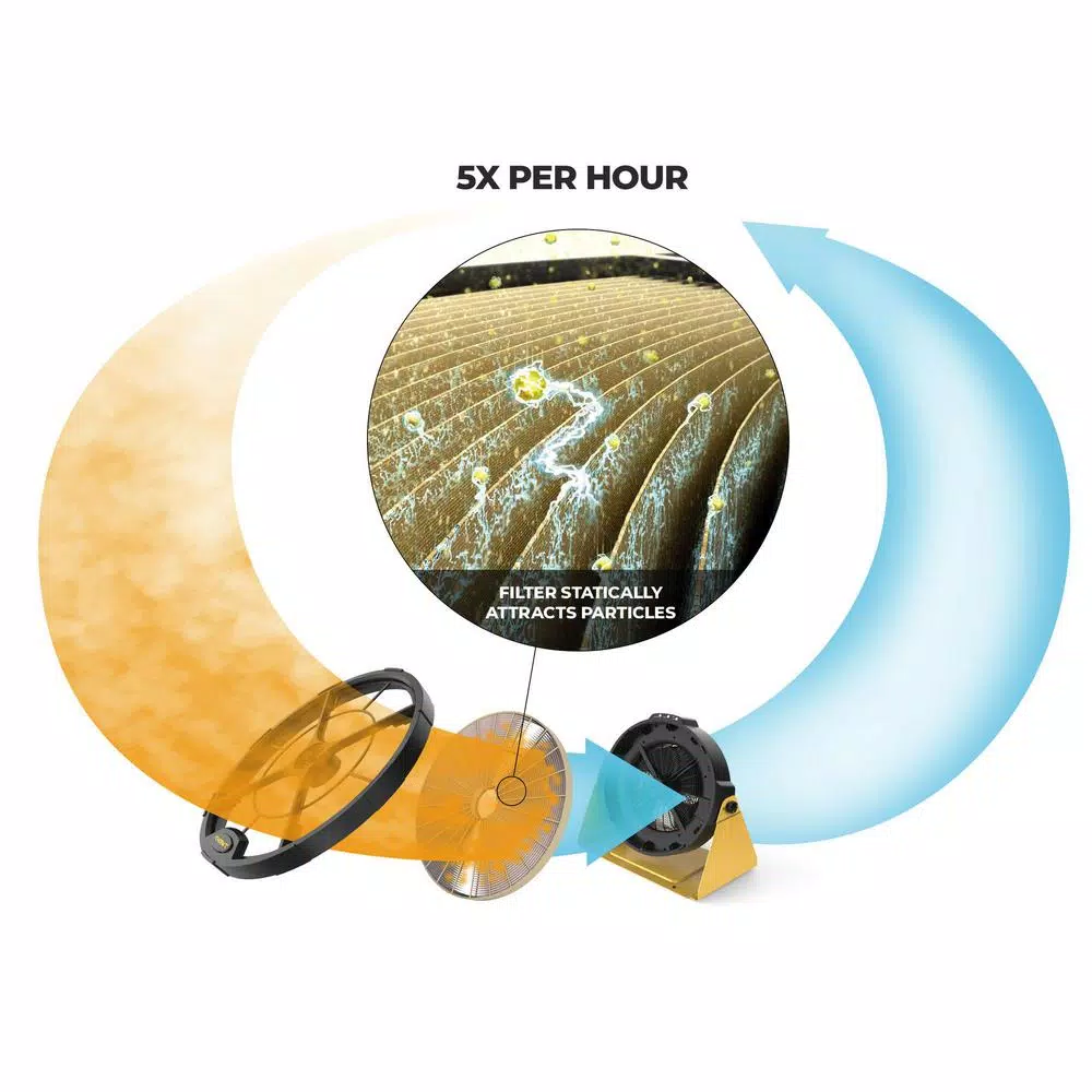 - Cycles air 5X per hour and proven to reduce airborne particles in a 680 sq. ft. area (oversized 2 car garage/shop)