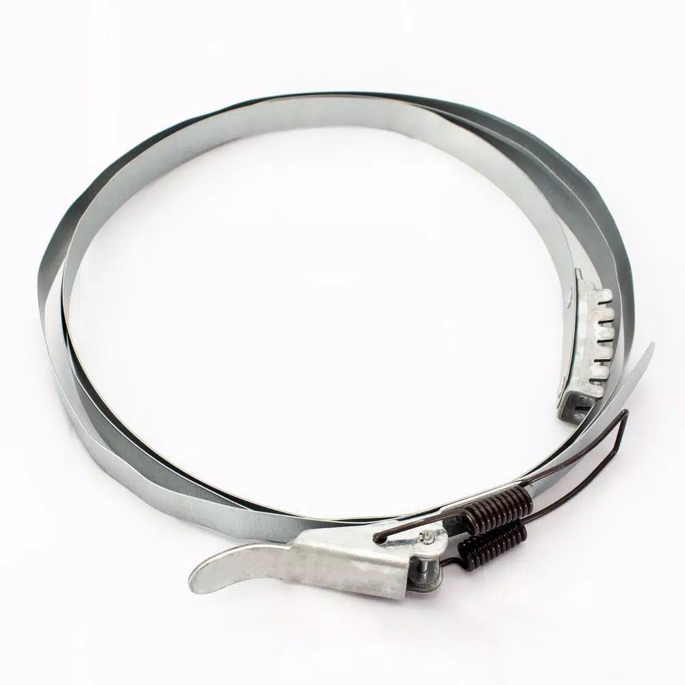 The POWERTEC 71214 Band Clamp for Dust Collector, 14 in. Dia, provides an airtight attachment of your dust bag onto your dust collector. Ideal for use with the POWERTEC DC1080 and a wide variety of similarly sized dust collectors with 14 in. Dia, this essential accessory makes dust bag replacement a quick, easy and efficient task. Its spring-pressured latch mechanism prevents air leakage to assist your collector in running at peak performance capacity. Precision-machined out of rugged steel to maximize high performance and durability. Zinc plating ensures rust and scratch resistance. This essential timesaving component measures in at 14 in. Dia and 45 in. circumference (or all-around length). Ensure to incorporate the thickness measurement of your bags when determining the clamps compatibility with your dust collector. You can depend on these effective, well-made clamps to promote cleaner breathing air and neater shop room surfaces.