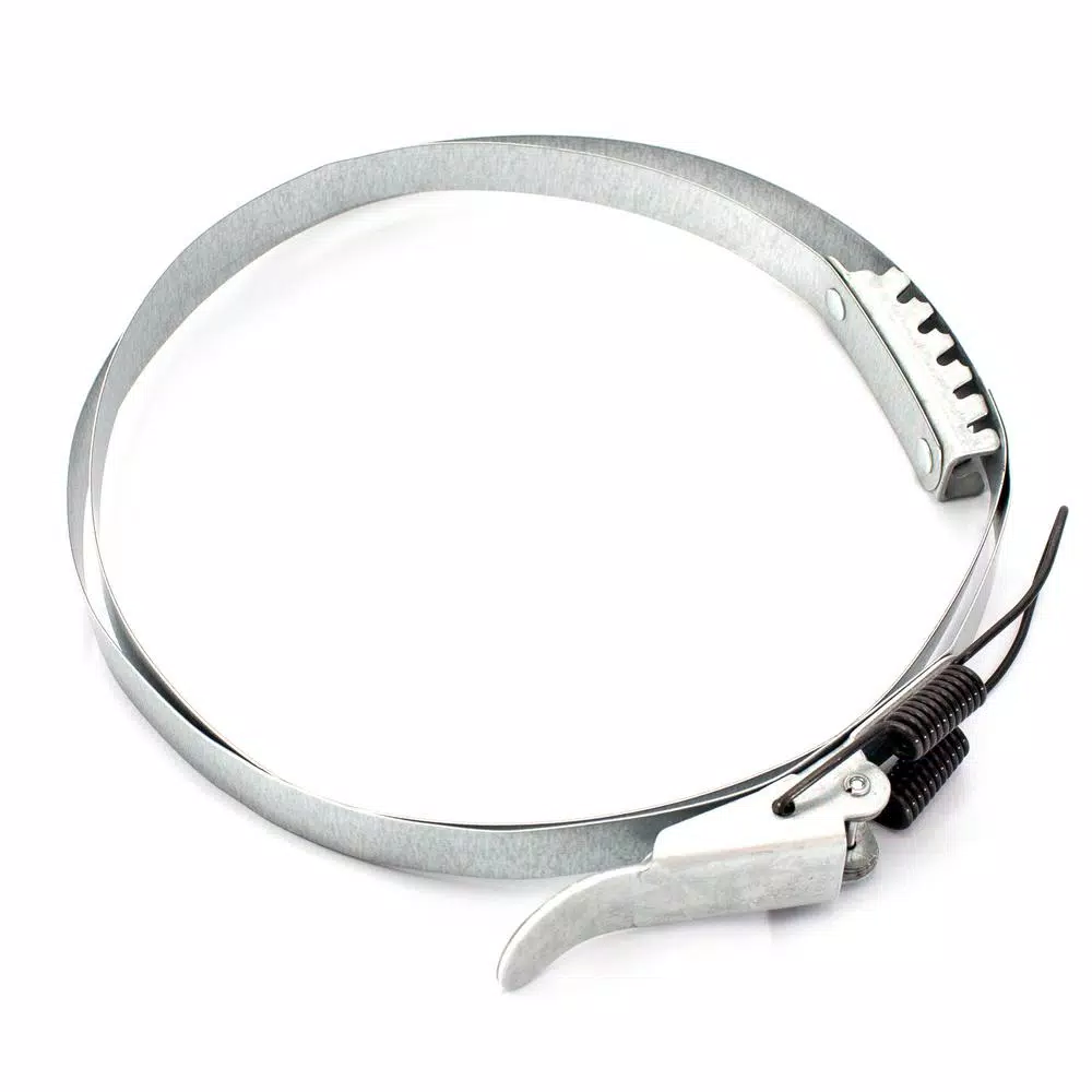 The POWERTEC 71216 Band Clamp for Dust Collector, 23-1/2 in. to 24-3/16 in. Dia, provides an airtight attachment of your dust bag onto your dust collector. Ideal for use on a wide variety of dust collectors with diameters ranging from 23-1/2 in. to 24-3/16 in., this essential accessory makes dust bag replacement a quick, easy and efficient task. Its spring-pressured latch mechanism prevents air leakage to assist your collector in running at peak performance capacity. Precision-machined out of rugged steel to maximize high performance and durability. Zinc plating ensures rust and scratch resistance. This essential timesaving component measures in at 23-1/2 in. to 24-3/16 in. Dia, ensure to incorporate the thickness measurement of your bags when determining the clamps compatibility with your dust collector. You can depend on these effective, well-made clamps to promote cleaner breathing air and neater shop room surfaces.