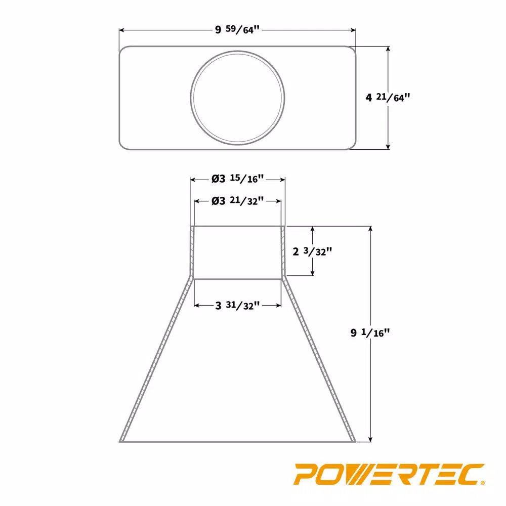 ใIntroducing the 4โ Rectangular Dust Hood by POWERTECใ This dust hood is designed to provide you with an easy-to-use wide mouth dust collection attachment. Not only does it capture a sizable area of dust and debris, but offers a handy โ ergonomic design that can be placed in multiple positions for almost any dust collection requirement. Itโs intended to work with a variety of machines and can be placed on top of a table/bench near the area where dust is being produced. The dust hood has a standard 4-inch port with a slightly tapered end to accommodate 4โ ID dust hoses. ใPremium Design and Constructionใ This dust collection dust hood possesses an interior funnel design. These ABS fittings also possess high tensile strength, abrasion resistance and durability โ perfect for most workshops that deliver exceptional woodworking and professional quality results. ใPackage Containsใ (1) Dust Hood Collector attachment ใDimensions ใ Overall size is 10โณ (across) x 4โณ (opening) x 9โณ (deep) Please Note: For some flexible dust hoses, hose clamps may be required (not included).