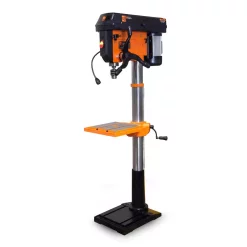 The WEN 17 in. 13 Amp Twelve-Speed Floor Standing Drill Press meets the needs of both home and professional users. This model includes a full 4-3/4 in. of stroke capacity, allowing users a large enough spindle travel to easily drill through a 4×4 board. Adjust the speed to 12 different stops between 180 to 2940 RPM (180, 290, 320, 400, 520, 560, 1000, 1240, 1520, 1720, 2150 and 2940 RPM). The 14 in. x 14-in. cast iron table features a 1 in. coolant runoff channel around the outer lip of the table to prevent both the workpieces and the drill bits from overheating. The table also pivots up to 45° in both directions and can be positioned up to 26 in. away from the chuck to accommodate even the largest of workpieces. The laser pointer ensures maximum precision during drilling operations, creating an X through the center of your target. The JT3 chuck accepts bits anywhere from 1/8 in. to 5/8 in. in size with onboard key storage to make sure that the chuck key is always close by. Cast iron frame and base gives the machine a hefty support system to prevent the drill press from walking or vibrating during operation. And because it is a WEN product, the WEN 17 in. 13 Amp Twelve-Speed Floor Standing Drill Press comes backed by a 2-year warranty, a nationwide network of skilled technicians and a friendly customer service team. Remember WEN.
