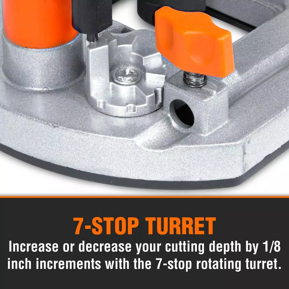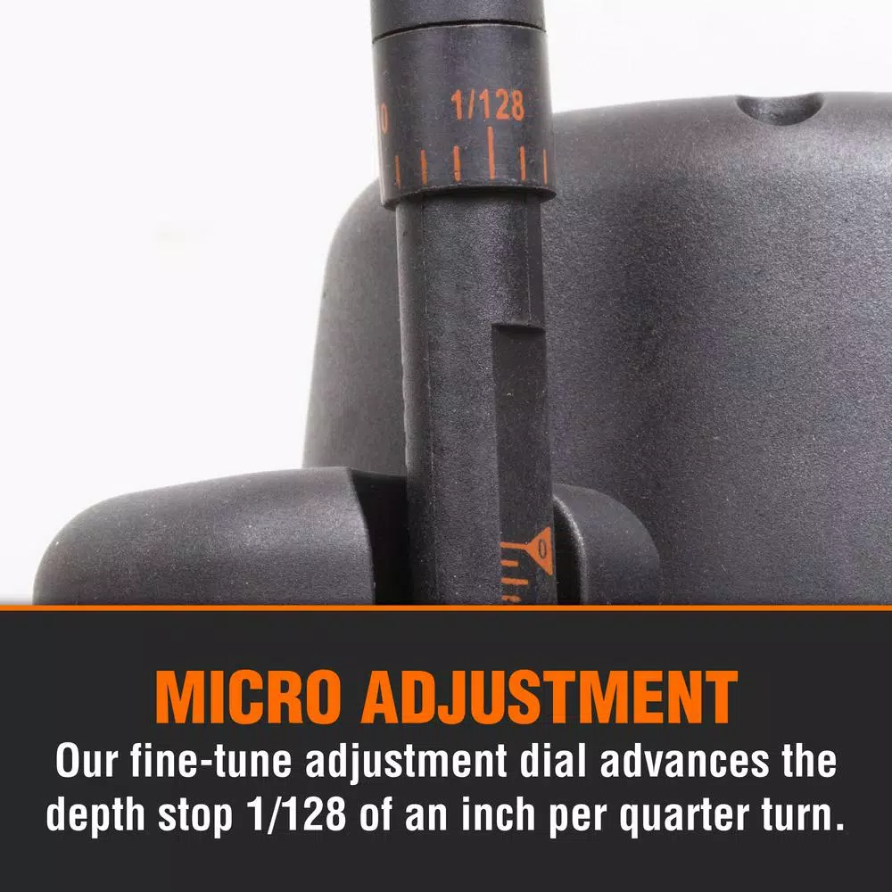 - Accepts both 1/4 in. and 1/2 in. router bits with a plunge depth of up to 2-3/8 in.